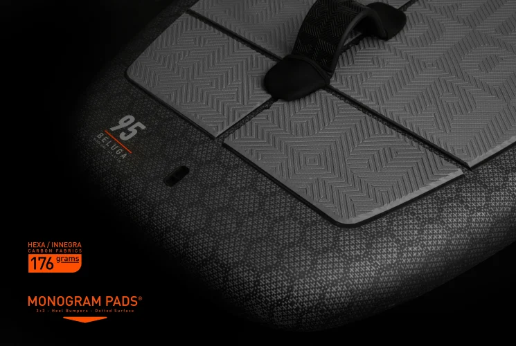 The tail incorporates a subtle bottom step to improve pitch control and pumping efficiency during takeoff. The redesigned concave deck keeps the front foot lower and closer to the foil, enhancing responsiveness and overall control for long, flowing sessions.